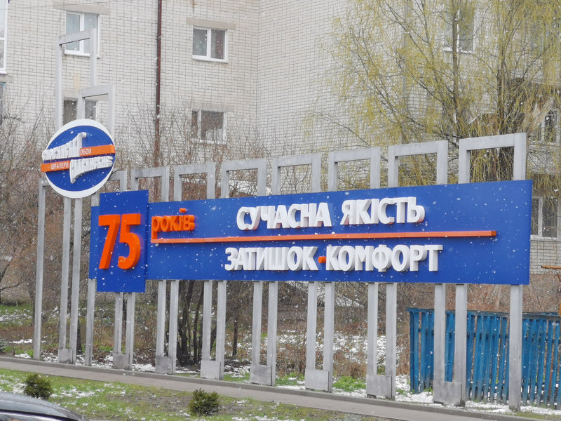 Zu Besuch bei den "Kampfschwalben" von Korjukiwka. Schnell wurde von einer Dame mit dem Handy, google Lens und google translator der Text auf einem Bild für micht übersetzt.