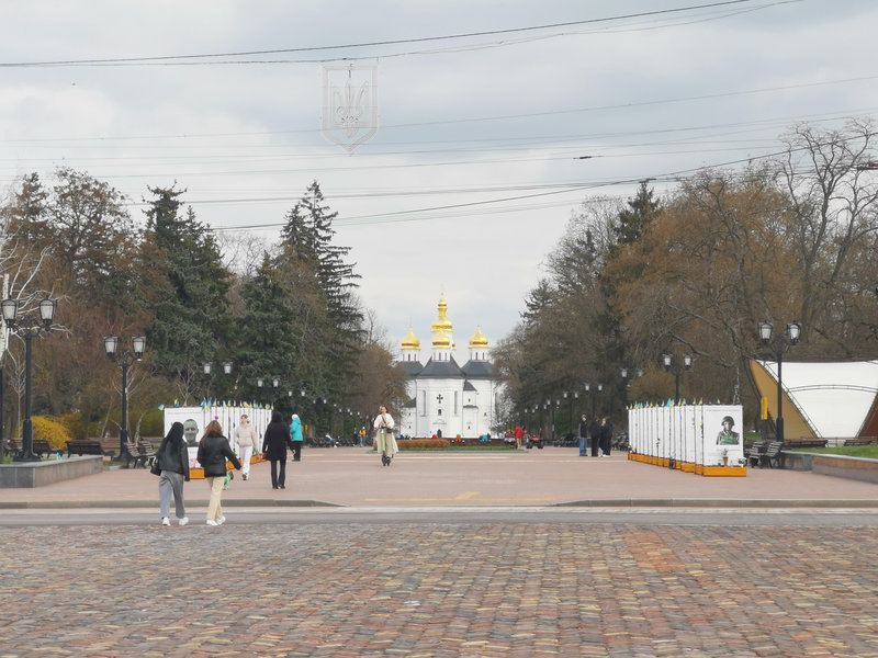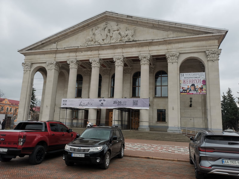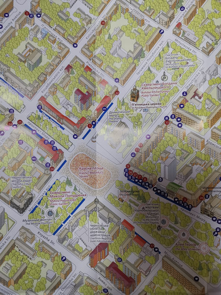 Rundgang in der Innenstadt von Tschernihiw (Theater, in der Tourismusinformation läuft gerade ein Bastelprojekt, Markt, hinter dem Theater, am Krasna Square ....)