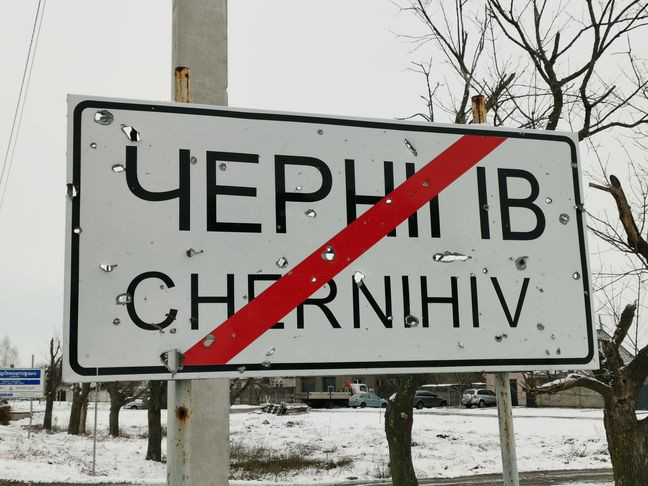 Es ist jetzt 12 Uhr durch, Iryna begleitet mich noch ein wenig in Richtung Hotel und Auto, und dann geht es weiter nach Korjukiwka. Nach einer kleinen Extra-Schleife durch Tschernihiw, GoogleMaps sei dank, erkenne ich die Ausfallstraße Richtung Nordosten wieder und fahre durch Tschernihiws Stadtrand, wo viele, viele Zerstörungen aus der Zeit der russischen Okkupation im Frühjahr 2022 noch sichtbar sind. Welch ein Gegensatz zum Stadtzentrum!