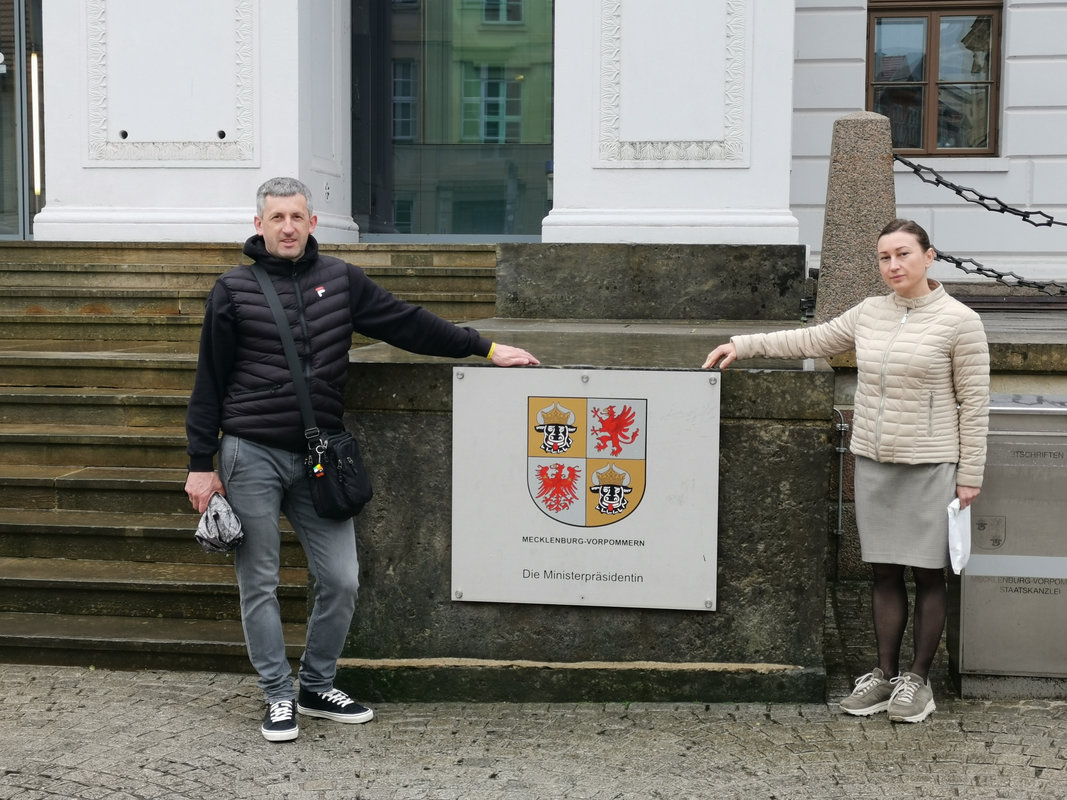 Fotos des Besuchs von Kateryna und Volodymyr Onyshschuke in Schwerin und der Ausstellungseröffnung in Schwerin am 28. Mai 2025