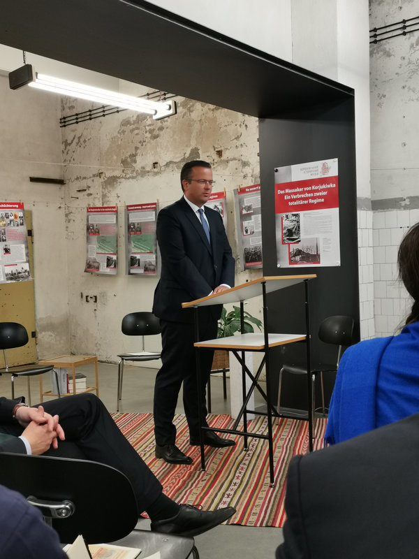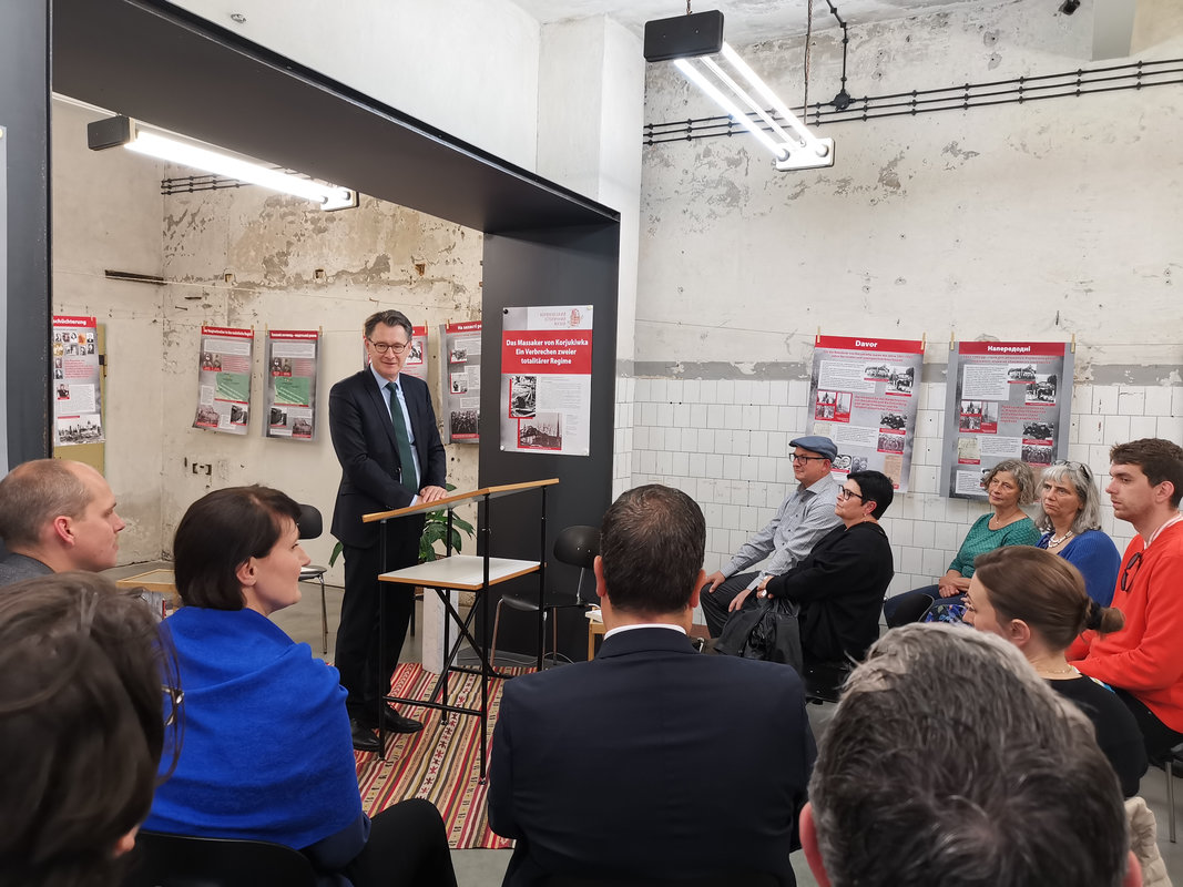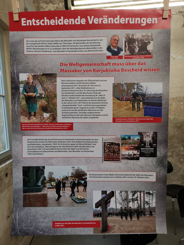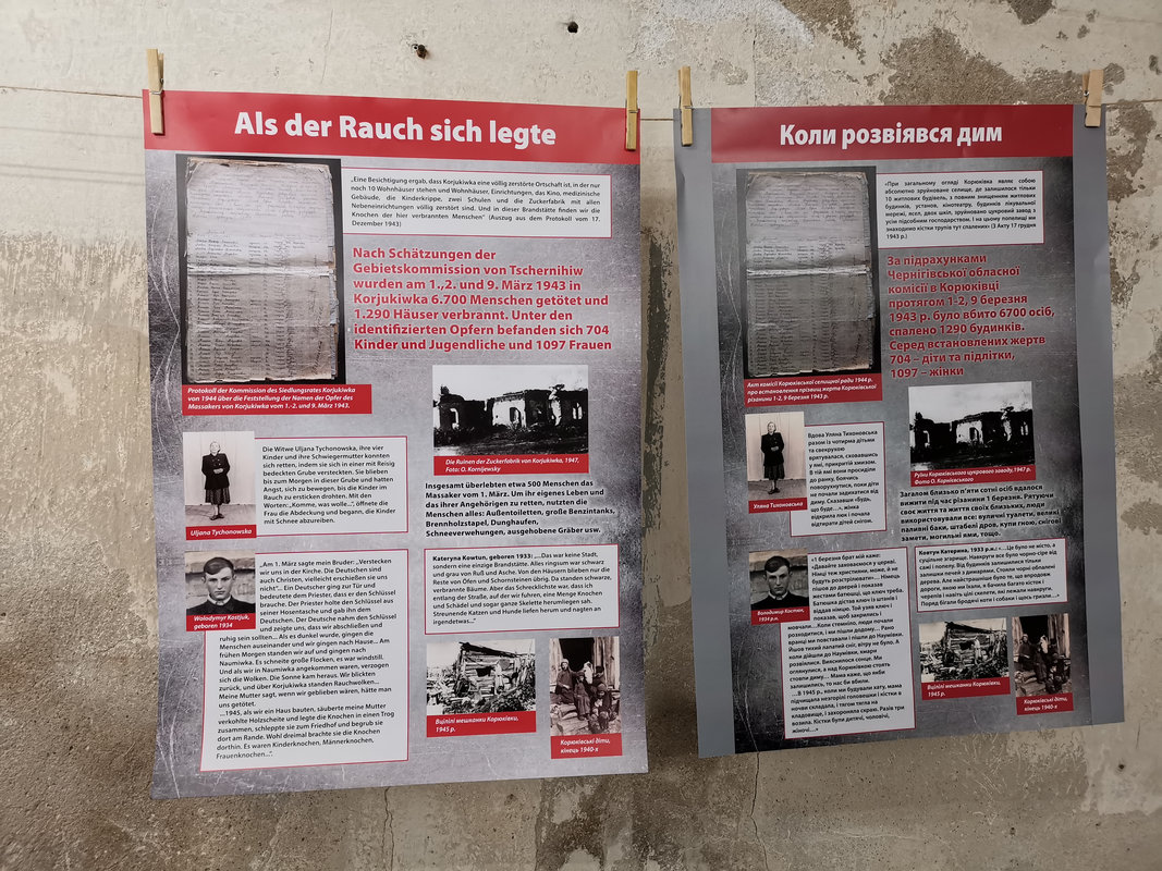 Mit der Ausstellung „Das Massaker von Korjukiwka – ein Verbrechen zweier totalitärer Regime“ rücken wir eines der größten NS-Kriegsverbrechen in der Ukraine in den Fokus der deutschen Erinnerungskultur: Am 1./2. März 1943 ermordeten deutsche und ungarische Einheiten im nordukrainischen Korjukiwka über 6.700 Zivilist:innen – eine kaum bekannte, aber erschütternde Geschichte.