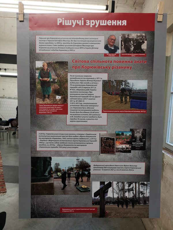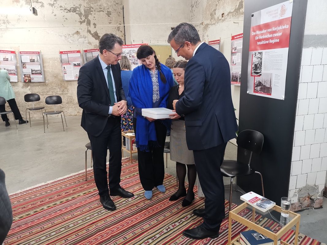 Die Ausstellung ist seitens des Historischen Museums Korjukiwka maßgeblich vorbereitet worden von Kateryna Onyshschuk, Historikerin und wissenschaftliche Mitarbeiterin im Historischen Museum Korjukiwka.