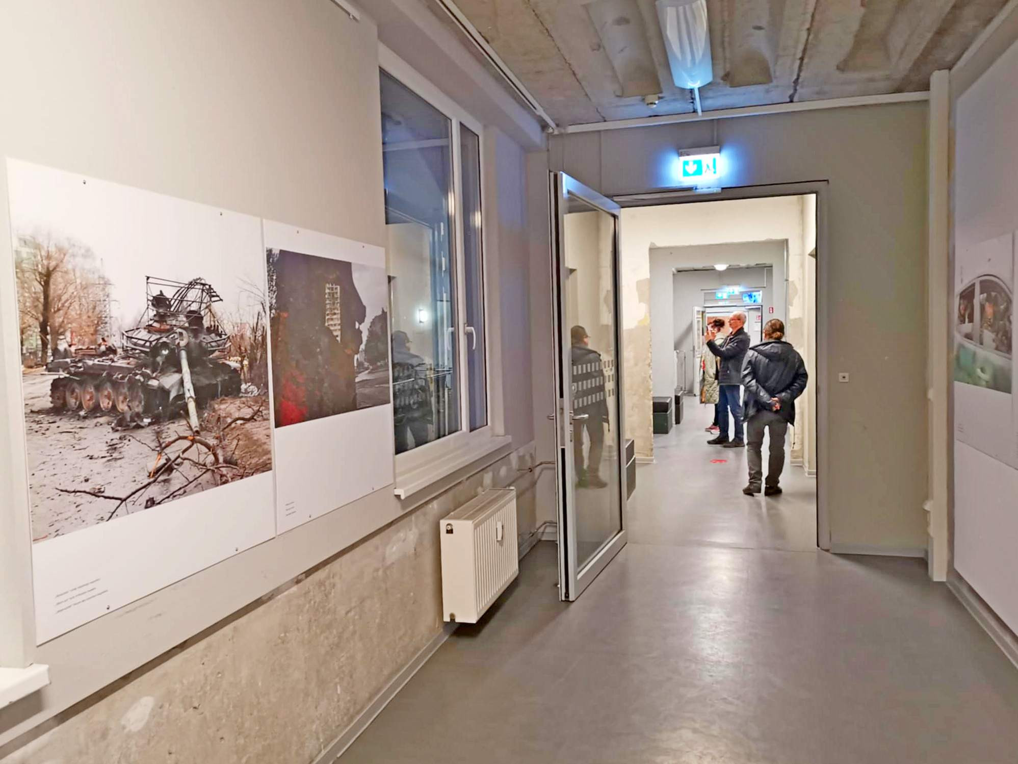 Fotoausstellung „Bericht aus der belagerten Stadt Tschernihiw“ und Malerei ukrainischer KünsterInnen vom 14. 3. bis 13. 4. 2025 in der Frieda23 in Rostock.
