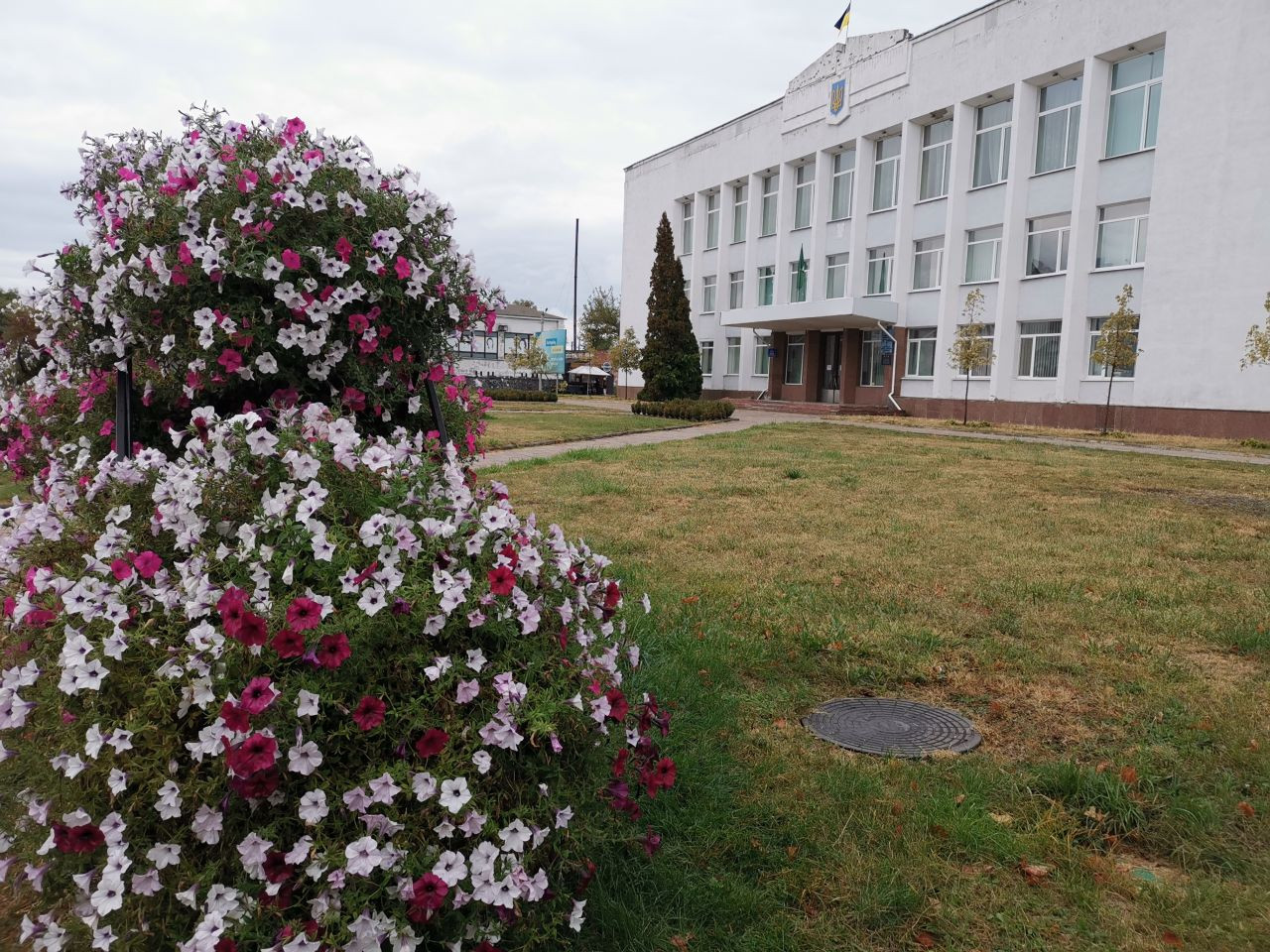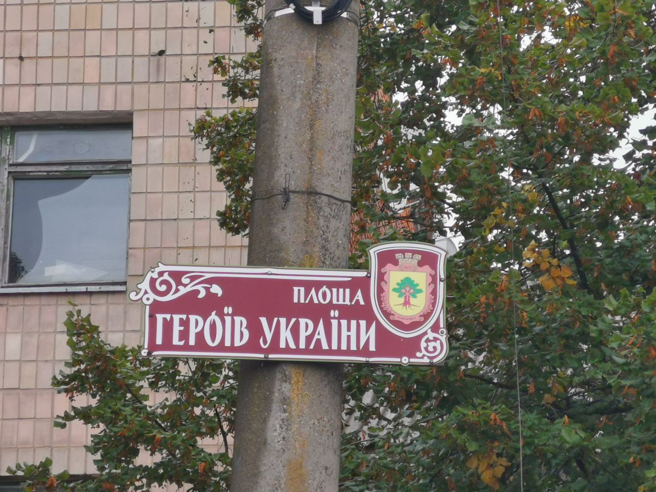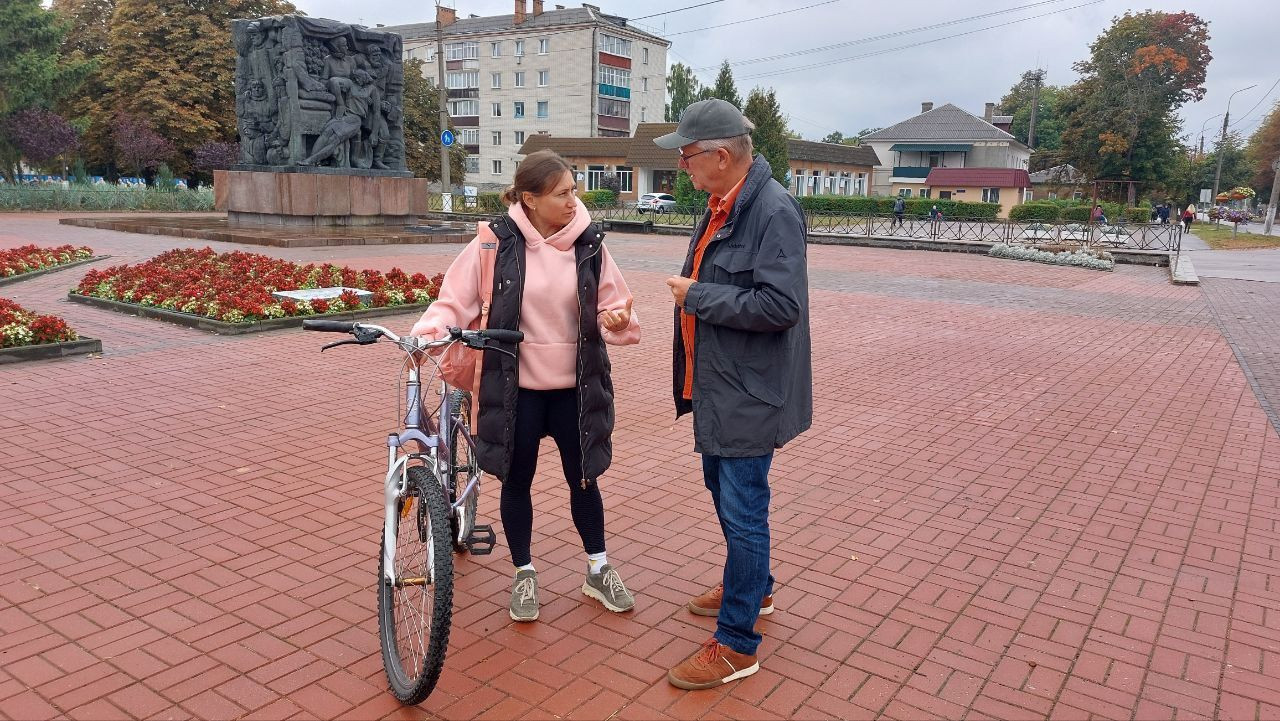 Um 12 Uhr war ich mit Volodymyr im Zentrum von Korjukiwka verabredet, wieder parke ich auf dem zentralen Platz dicht bei dem Hotel, in dem ich übernachten werde, eingerahmt zwischen dem Haus der Kreiserwaltung auf der nördlichen und einen neu hergerichteten Haus mit einem kleinen Supermarkt und anderen Dienstleitstungsangeboten auf der anderen Seite.