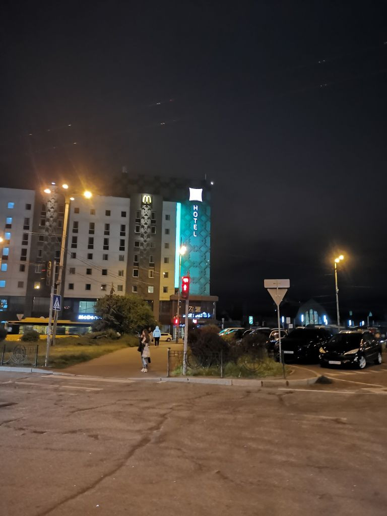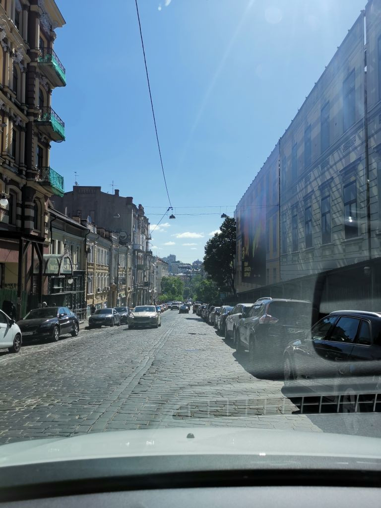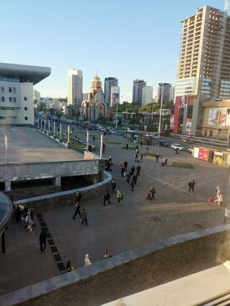 Ankunft in Kyjiy, Übernachtung in einem Hotel neben dem Bahnhof, teilweise in der Tiefgarage als Luftschutzbunker wegen Luftalarm.