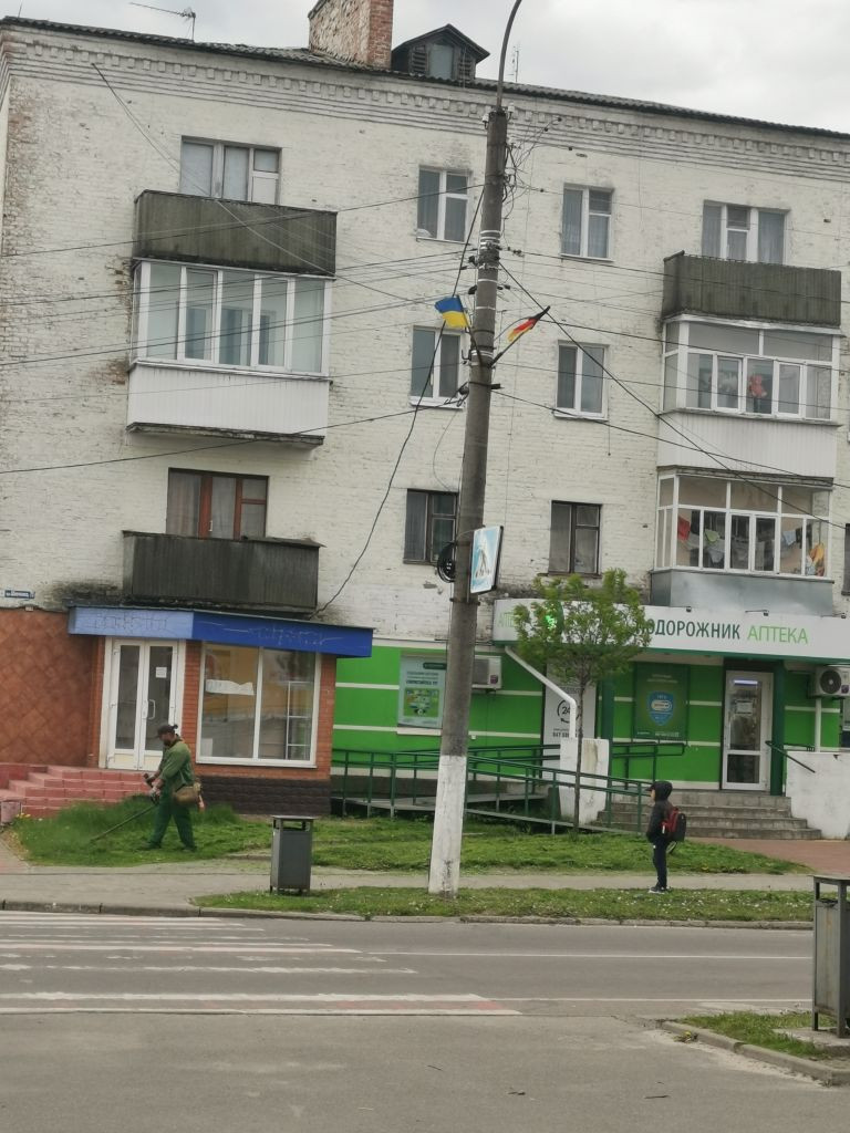 Am 10. Mai mit Mariia durch Korjukiwka.