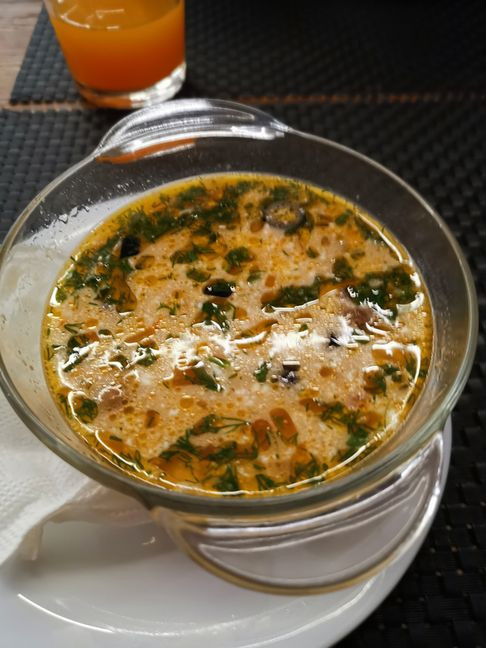 Das Restaurant ist voll. Wir rücken zusammen mit Olena, ihrem Mann und einem mit ihnen befreundeten Ehepaar. Der Tisch ist reichlich voll gedeckt, es gibt mehrmals eine Runde Hochprozentiges und wir üben „Prost“ auf Ukrainisch (Ваше здоров'я.). Die Musik ist relativ laut, eine Gruppe von vielleicht 10 Frauen fängt an zu tanzen und später tanzen auch wir. Eine tolle, ausgelassene Stimmung.