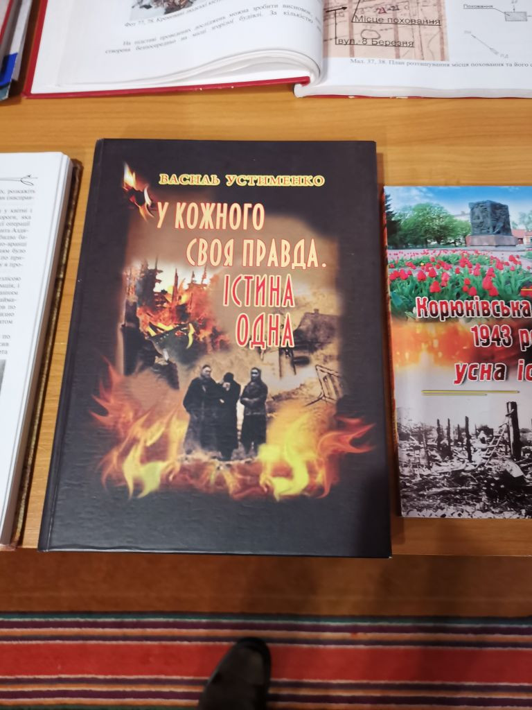 In der Ukraine spielt das Massaker von Korjukiwka in der nationalen Erinnerung an den zweiten Weltkrieg eine wichtige Rolle. Entsprechend gibt es eine Vielzahl von ukrainischer Literatur zum „Korjukiwka-Massaker“, aber eben nur wenige Aufsätze auf Deutsch.