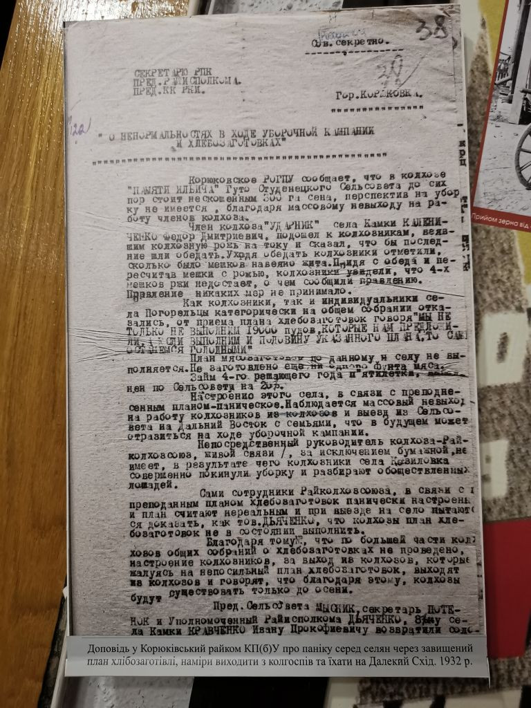 Eine weitere Idee ist, über die Ereignisse in Korjukiwka im März 1943 in Deutschland eine Ausstellung zu zeigen. Eine solche Ausstellung muss natürlich einerseits auf der ukrainischen Seite vorbereitet werden, auf der anderen Seite ist dafür auf der deutschen Seite der Boden zu bereiten. Ausstellungen leben von Bilder, heutzutage auch von Video-Material. Ganz wesentlich kann die Ausstellung mit dem gestaltet werden, was im Museum in Korjukiwka vorhanden ist. Für Kooperationspartner einer Ausstellung in Deutschland sollte das in Korjukiwka vorhandene Material sichtbar gemacht werden.