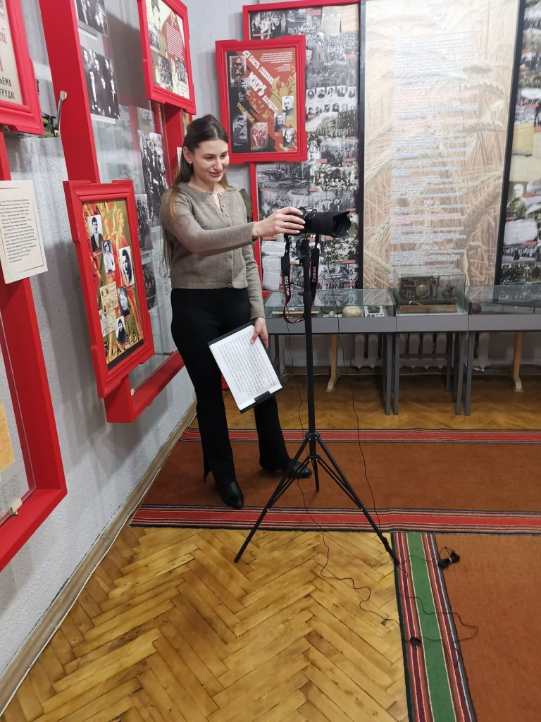 Im Mai 2024 hatte Kateryna mich auf Deutsch durch das Museum geführt und mir auch viele Fragen auf Deutsch beantwortet. Ich habe damals Bauklötze gestaunt! Kateryna hatte dazu einen deutschen Text ausgearbeitet. So entstand spontan die Idee, ein Video aufzunehmen, in dem Kateryna auf Deutsch durch das Museum führt. Damit lässt sich doch die besondere Geschichte von Korjukiwka für ein deutsches Publikum leichter vermitteln. Filme auf Ukrainisch gibt es bereits.