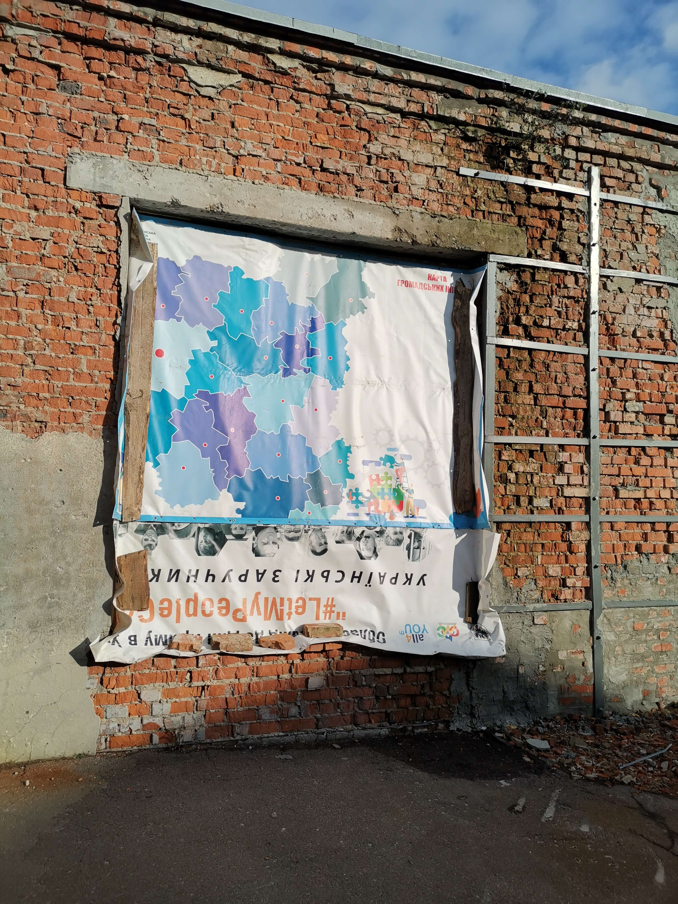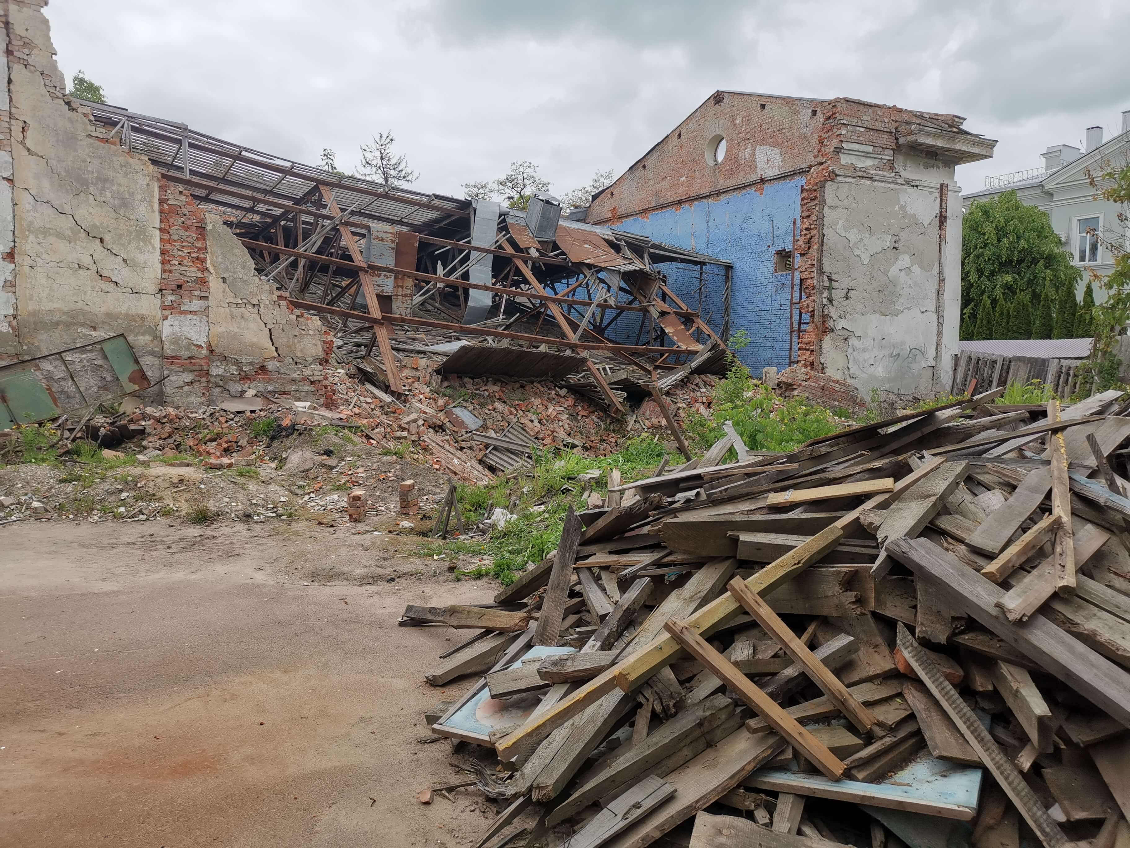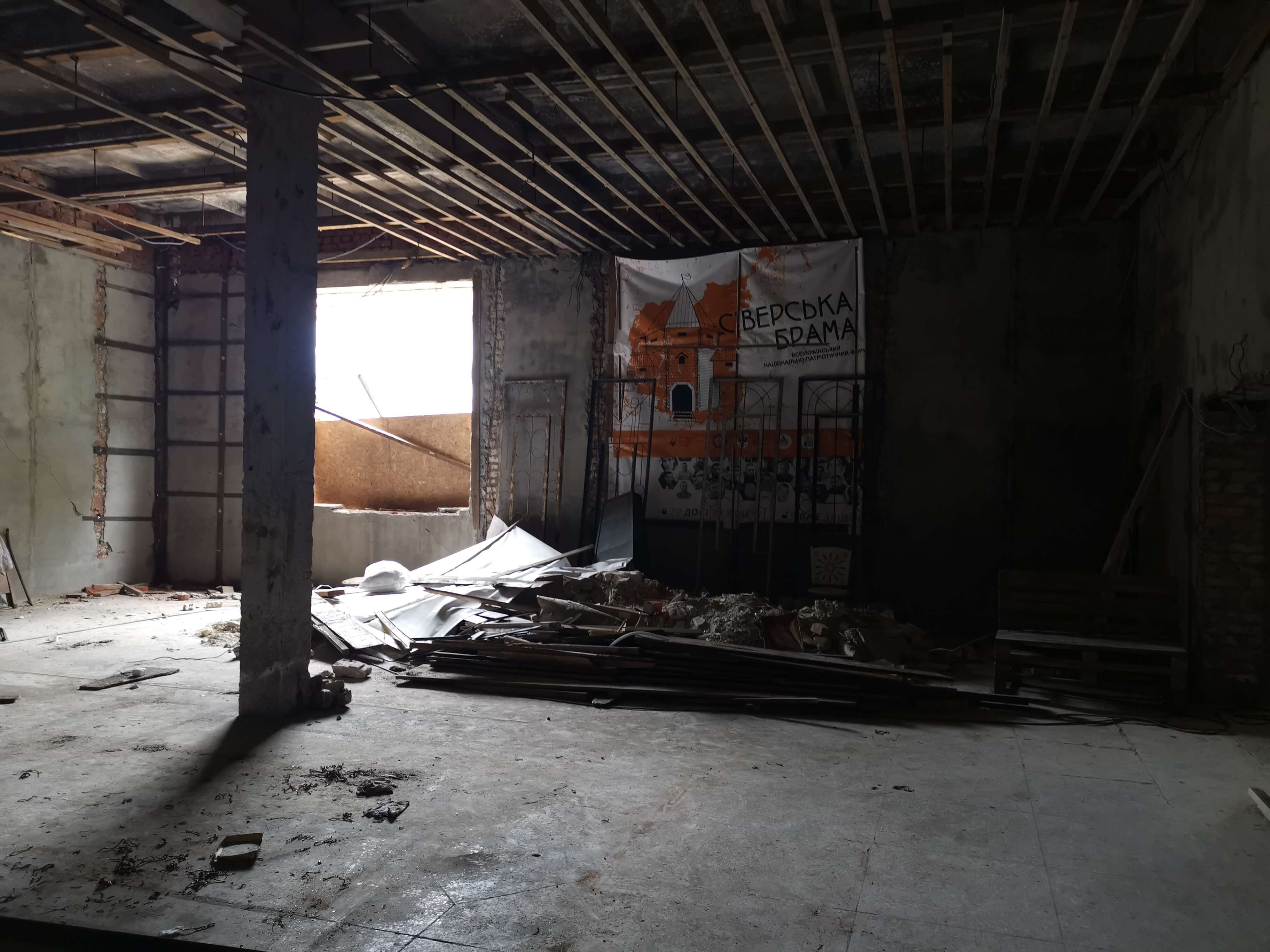 Danach geht es zum ausgebombten ehemaligen Jugendzentrum von Tschernihiw, früher einmal ein Kino. Vor der russischen Vollinvasion ab dem Februar 2022 auf die Ukraine war die Renovierung des Jugendzentrums geplant gewesen, dann wurde Ende Februar 2022 alles von einer russischen Rakete zerstört. Im Mai 2024 hatte mir Iryna, die Leiterin des Jugendzentrums, schon einmal das Haus und Gelände gezeigt. Seit dem hat sich hier ersichtlich nichts verändert. Iryna hat mittlerweile eine neue Aufgabe im Bereich internationale Beziehungen und Investitionen.