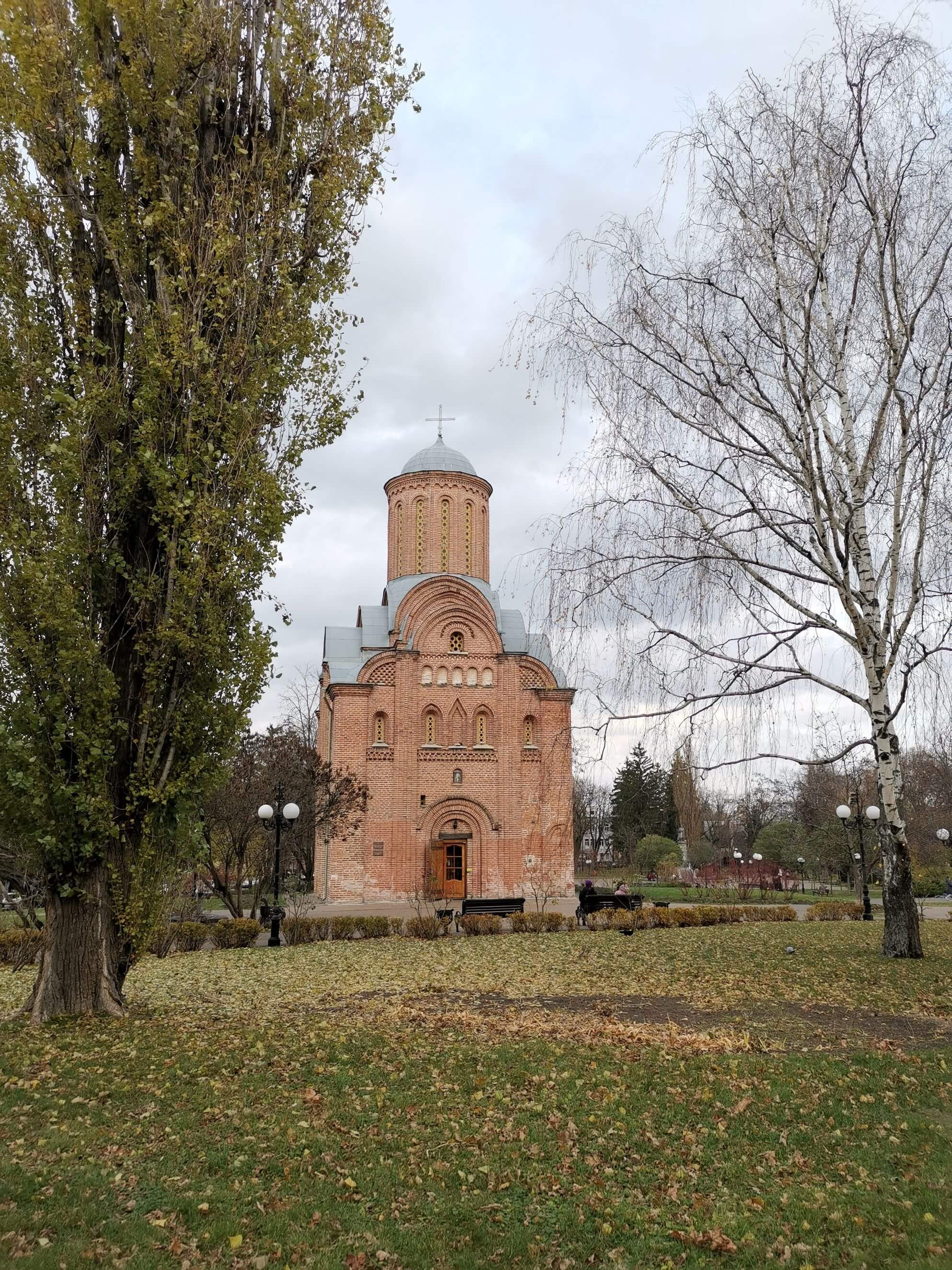 Gleich hinter dem Theater in einem kleinen Park steht die Pjatniza-Kirche, vielleicht das bekannteste Wahrzeichen Tschernihiws. Sie wurde Ende des 12. – Anfang des 13. Jahrhunderts erbaut. Die Kirche wurde mehrfach zerstört und wieder aufgebaut. Zum ersten Mal im Jahr 1239, während der mongolisch-tatarischen Invasion. Kardinale Änderungen fanden im XVIII. Jahrhundert (nach dem Brand von 1750) und im 19. Jahrhundert statt, als der Kirche Seitenschiffe hinzugefügt wurden, und in den Jahren 1818-20. Nach dem Projekt des Architekten A. Kartashevskyi wurde an der Westfassade ein Rundturm mit Glockenturm angebaut. Die Kirche wurde auch im Zweiten Weltkrieg zerstört. 1943-45 wurden Konservierungsarbeiten durchgeführt. Die Restaurierung wurde in der angeblich ursprünglichen Form nach dem Projekt des herausragenden russischen Restaurators P. Baranovsky abgeschlossen. Gleichzeitig wurden die ursprünglichen Seitenvorräume nicht wiederhergestellt, ebenso wie die Anbauten des 17.-19. Jahrhunderts, der Rundbau-Glockenturm wurde abgebaut.