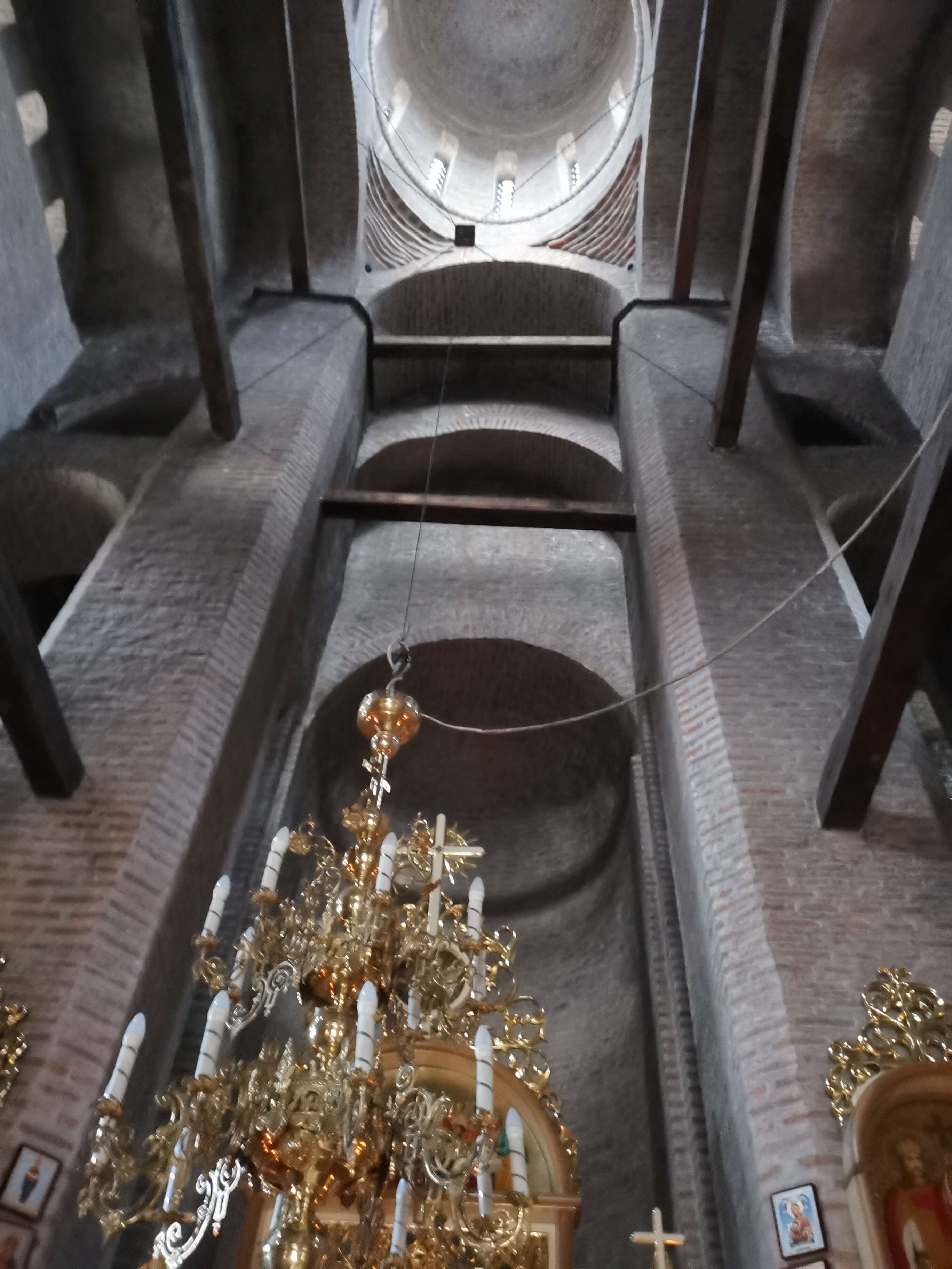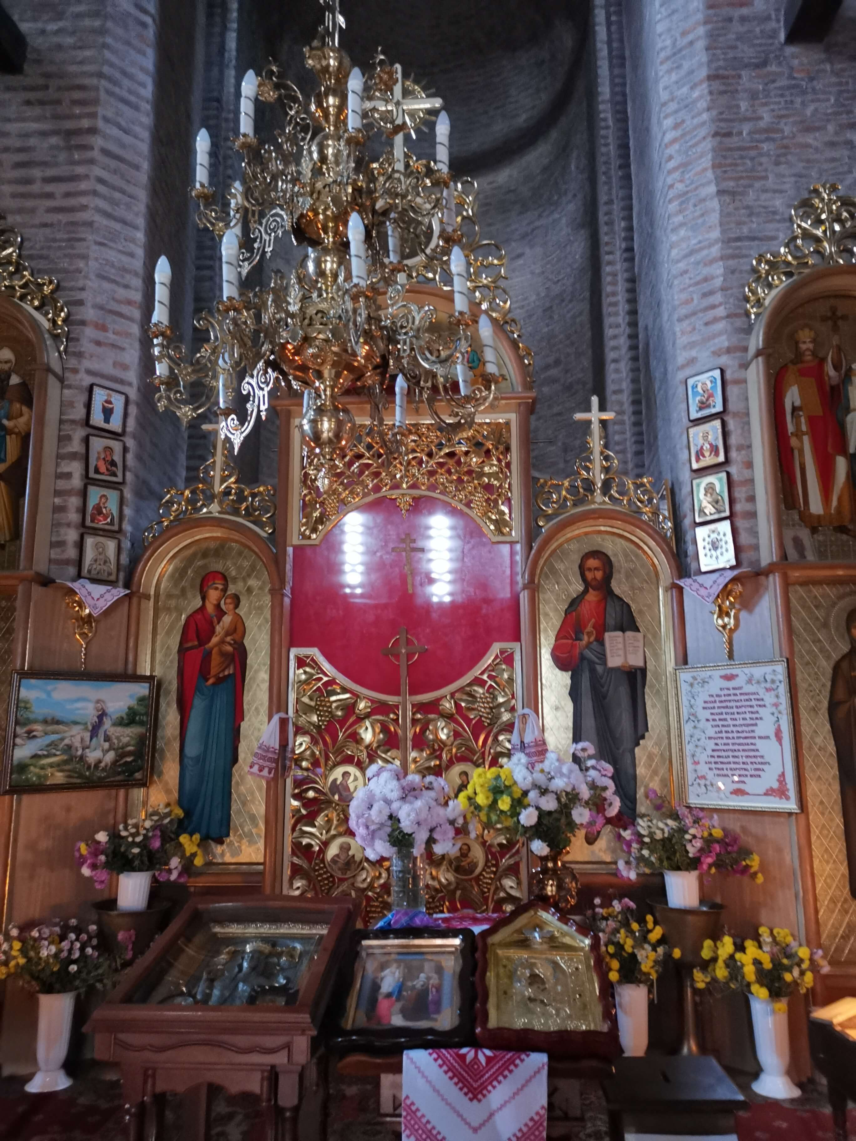 Die Kirche ist geöffnet und ich gehe rein. Nein, ich darf keine Fotos machen. In einer Schale mit Sand stehen brennende, schlanke Kerzen zum Andenken an geliebte Menschen oder für Segenswünsche. Ich kaufe zwei Kerzen, zünde sie an brennenden Kerzen an und stelle sie in den Sand. Der alten Dame im kleinen „Schalter-Verschlag“ rechts neben dem Eingang habe ich den doppelten Preis für die Kerzen gezahlt. Als ich schon gehen will, gibt sie mir zu verstehen, dass ich jetzt doch Fotos machen darf. Sehr schön. Die enge, aber hohe Kirche ist glanzvoll ausgestattet.
