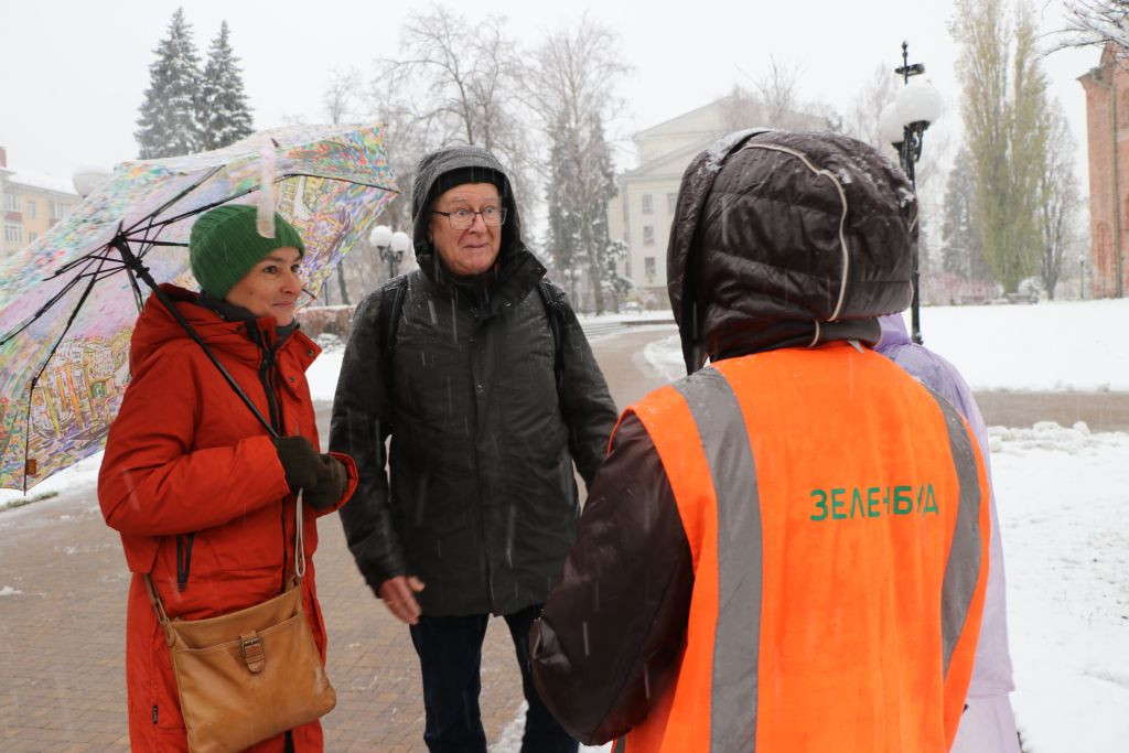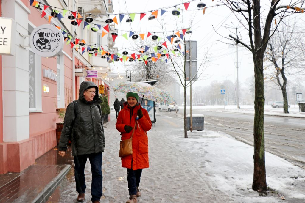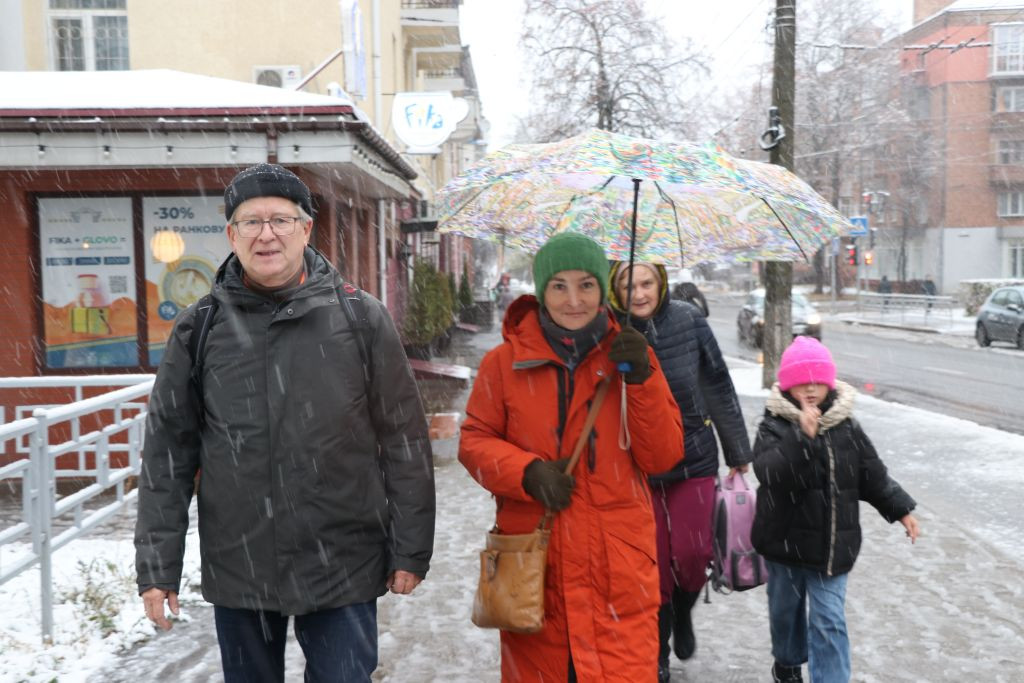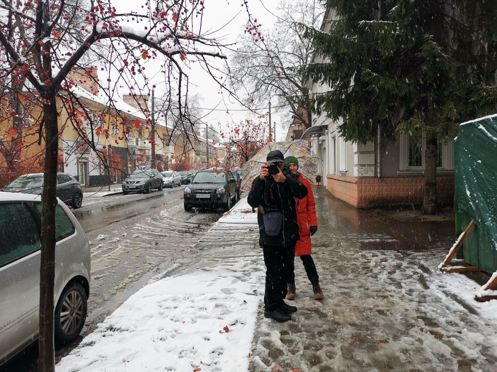 Zeitig raus aus dem Bett, gefrühstückt, und pünktlich kurz vor 8 Uhr erscheinen Vladyslav und Olena im Hoteleingang. Draußen schneit es, die Temperatur ist ca. null Grad. Es sieht nicht danach aus, dass die Foto-Tour länger dauern wird.