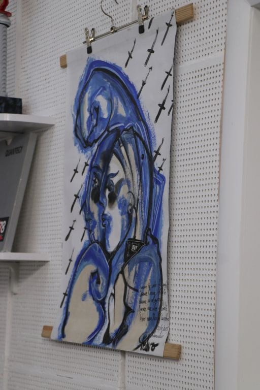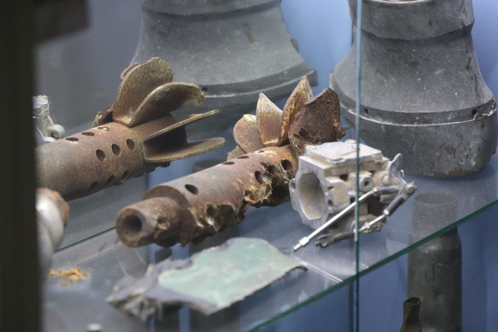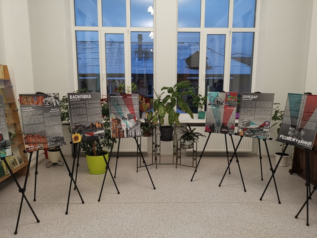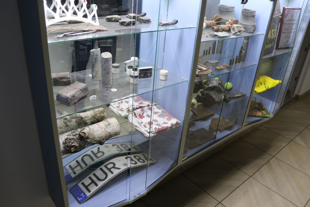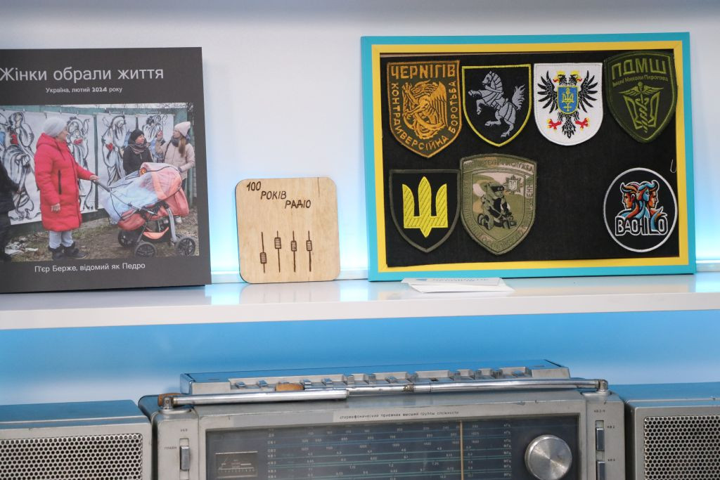 Andriy Titok führt uns anschließend ein wenig im Haus herum und erzählt von der Arbeit während der russischen Okkupation im Frühjahr 2022, das Haus war da gerade frisch renoviert und sie konnten nicht richtig arbeiten. In Vitrinen liegen Gegenstände, die an die Zeit im Frühjahr 2022 erinnern. Andriy Titok ist Produzent der Video-Dokumentationen Die Schlacht um Tschernihiw über die Zeit der Belagerung der Stadt Tschernihiw im Frühjahr 2022. In einem Interview erzählt Andriy von der Produktion der Dokumentation und der Zeit der Belagerung (Text im Original und in deutscher Übersetzung). Wer die Menschen in der Region Tschernihiw verstehen will, was sie erlebt haben und warum sie um ihre Freiheit kämpfen, der muss sich mit den Erfahrungen der Menschen in der Zeit der Belagerung auseinandersetzen, so schwer die Bilder auch zu ertragen sind.