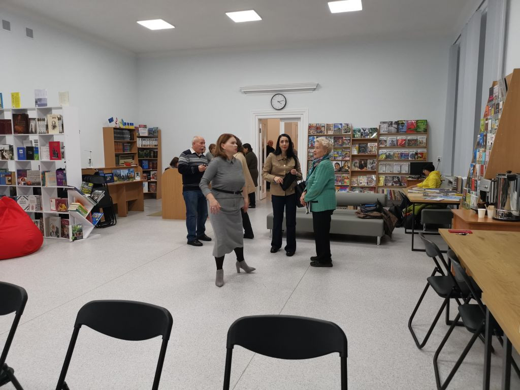 Einer Fotografin umschwirrt uns nahezu die ganze Zeit. Hier lerne ich, dass Öffentlichkeitsarbeit über social media in Tschernihiw, wohl in der ganzen Ukraine, einen anderen Stellenwert hat. "Tue Gutes und rede darüber", die Stadt, die Gemeinde teilhaben lassen, was auch an kleineren Ereignissen passiert, ist hier viel verbreiteter. Ich denke, dass erzeugt auch Bindung zu den Nutzern der Stadtbücherei und trägt zu einem Gemeinschaftsgefühl bei. Wahrscheinlich korrespondieren die online-Angebote mit der Nutzung von social media-Angeboten aus dem lokalen Umfeld. Die Fotos bekomme ich später ungefragt zum download zur Verfügung gestellt werden. Am nächsten Tag gibt es einen Facebook-Post zu meinem kurzen Besuch als Ehrenamtler.
