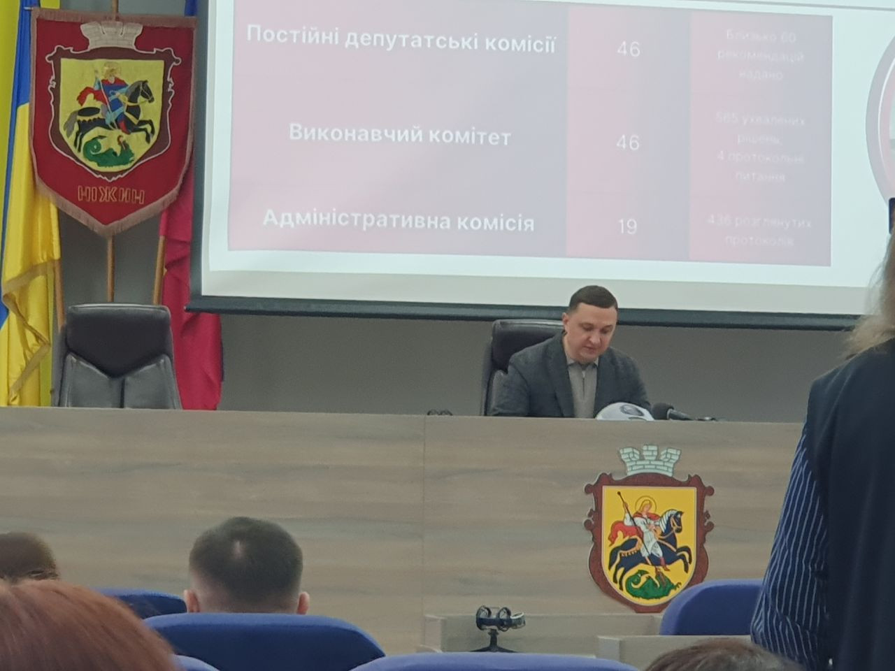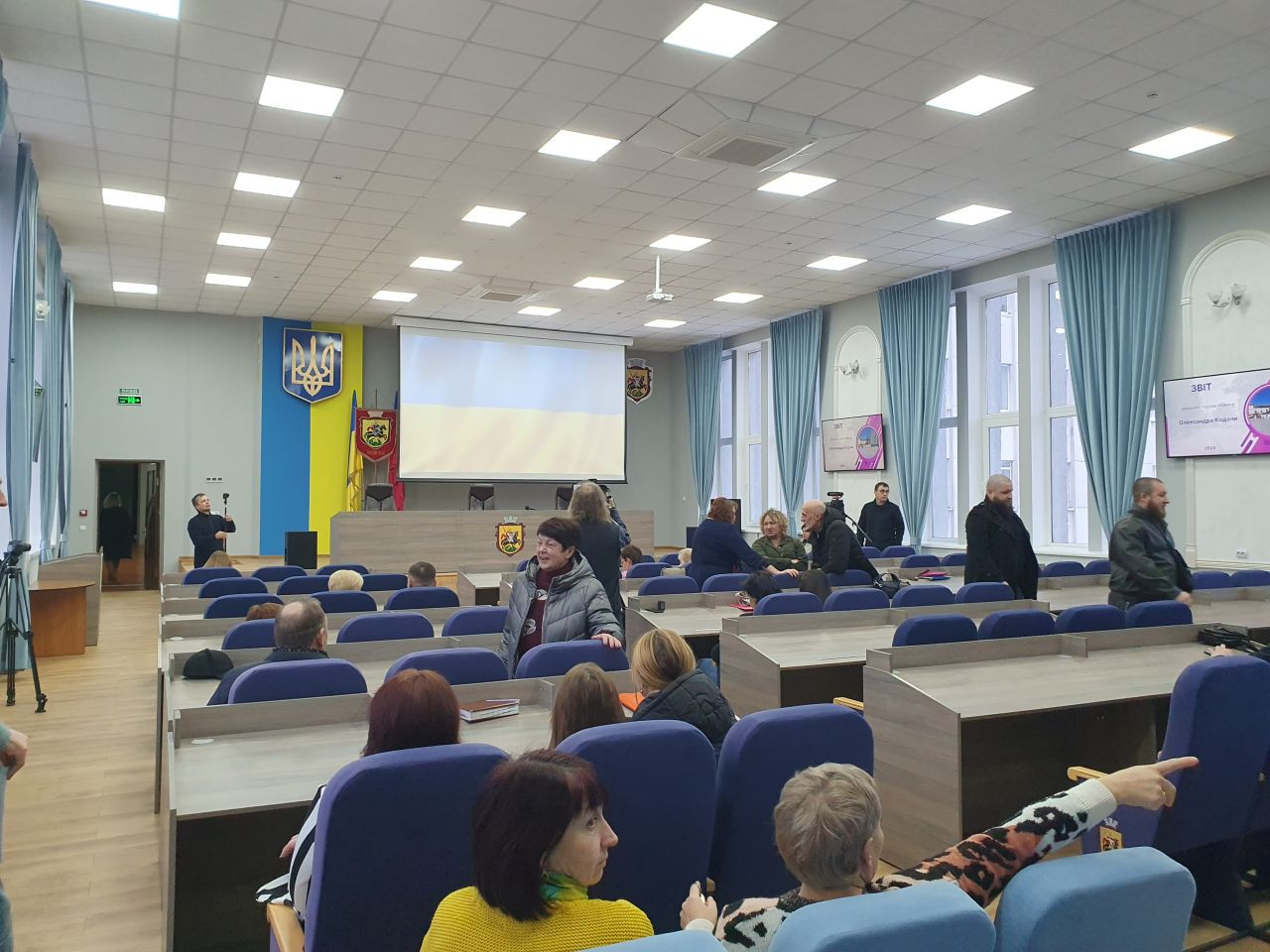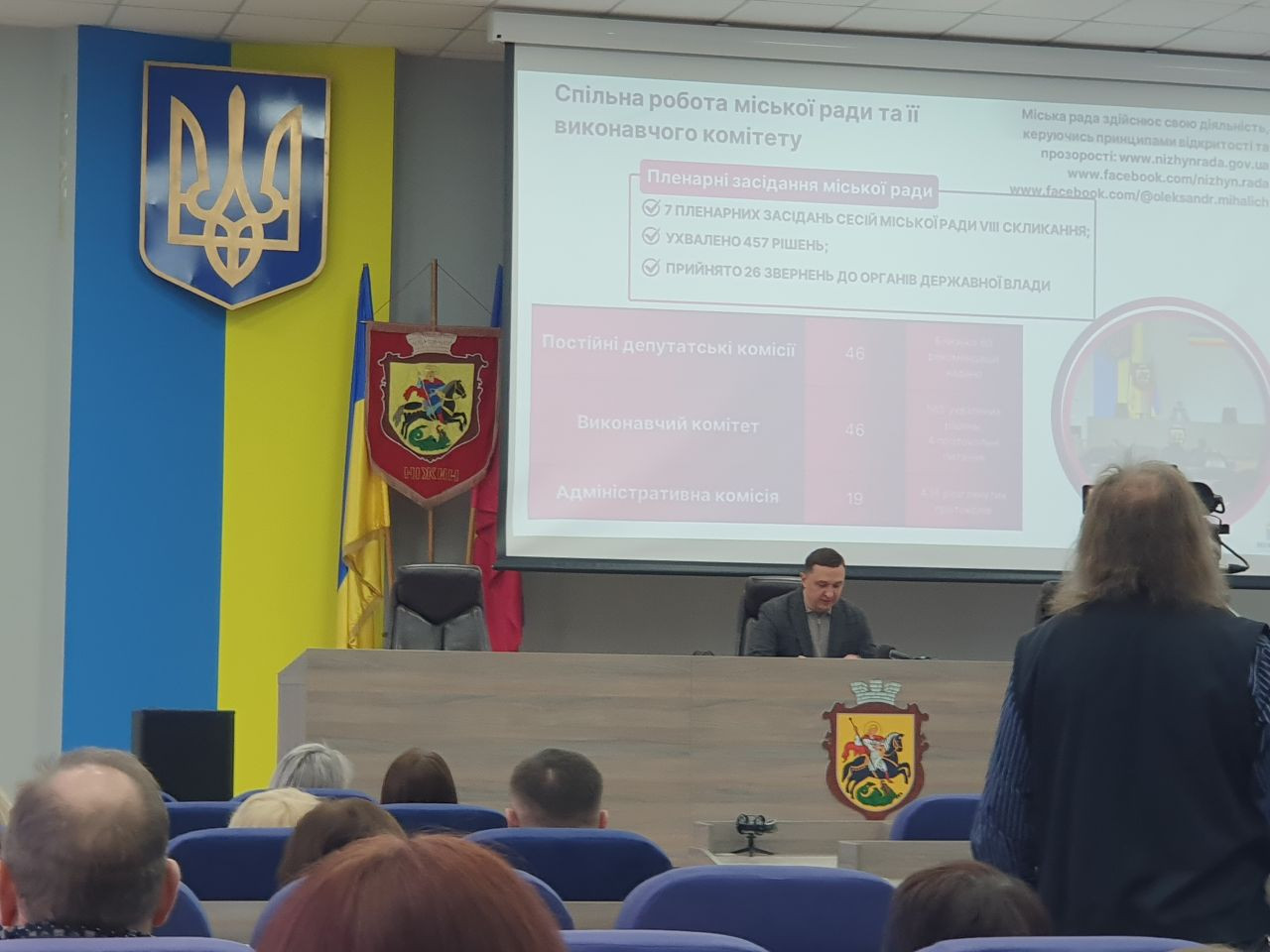 Für kurz vor 8 Uhr bin ich mit Julia am Eingang des Rathauses verabredet, denn um 8 beginnt eine Veranstaltung im Sitzungssaal des Stadtrats von Nizhyn, auf der der Bürgermeister einen Bericht über das Jahr 2024 vorstellt.
