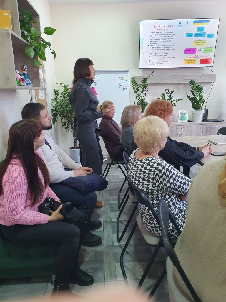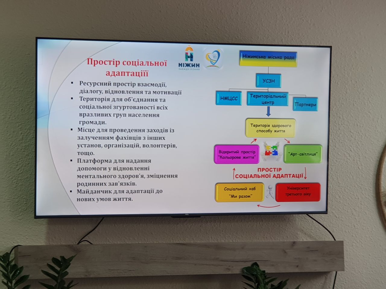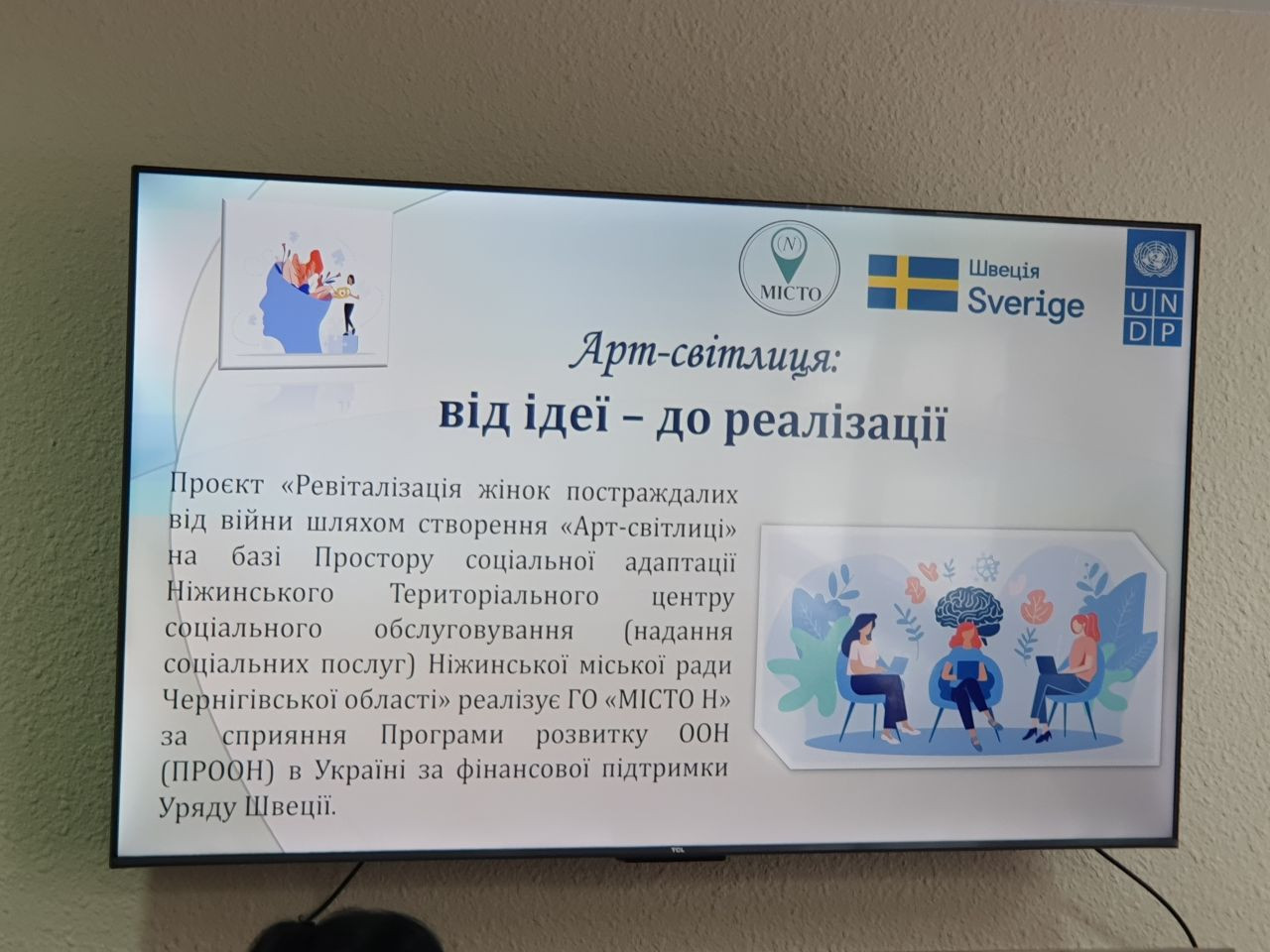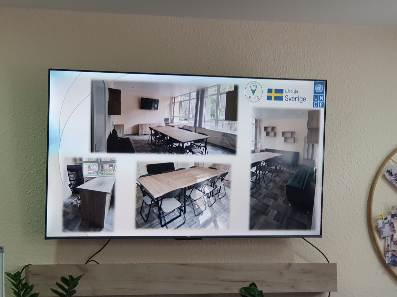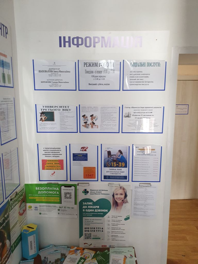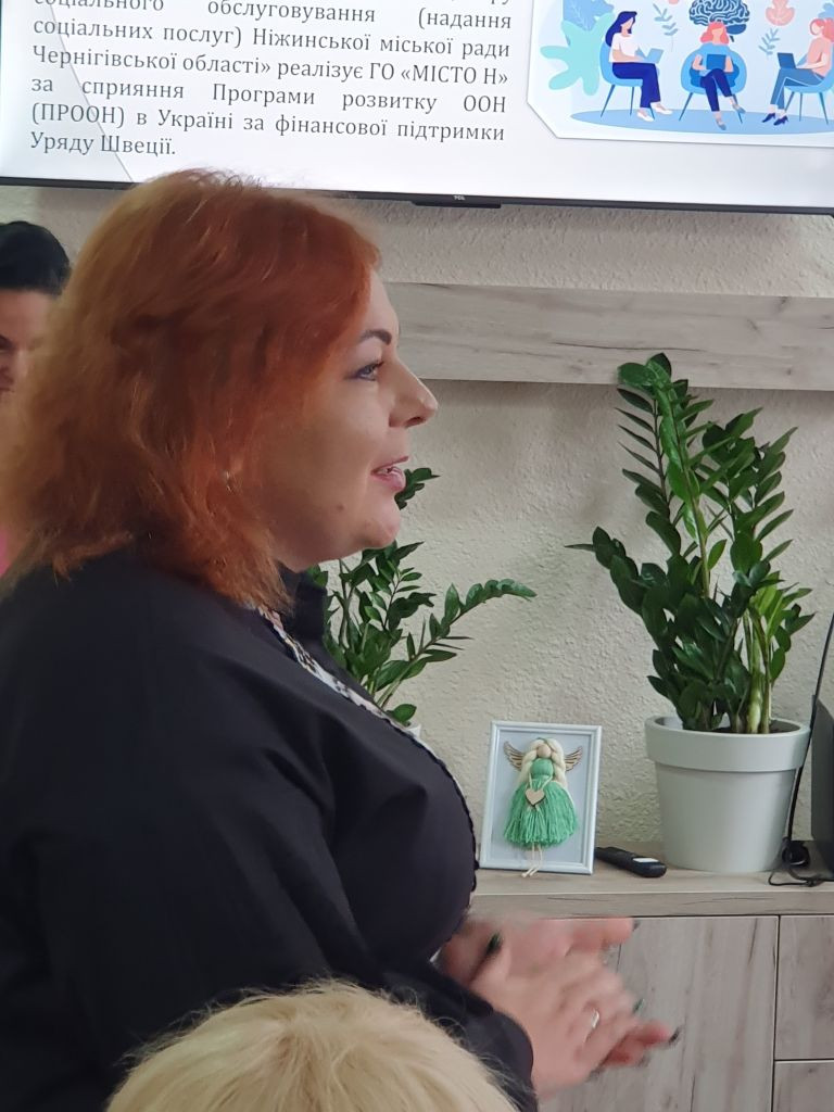 Zurück zum Rathaus übernimmt Kateryna jetzt meine Begleitung. Vor dem Rathaus wartet ein Kleinbus und ich fahre mit einer Gruppe zu einem sozialen Zentrum zur Unterstützung von Frauen, das gleich eröffnet werden soll. Im Bus sind wohl Vertreterinnen des Stadtrates von Nihzyn und aus der Stadtverwaltung. Später kommen noch weitere Besucher aus der Stadt-Community hinzu.