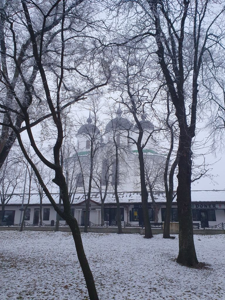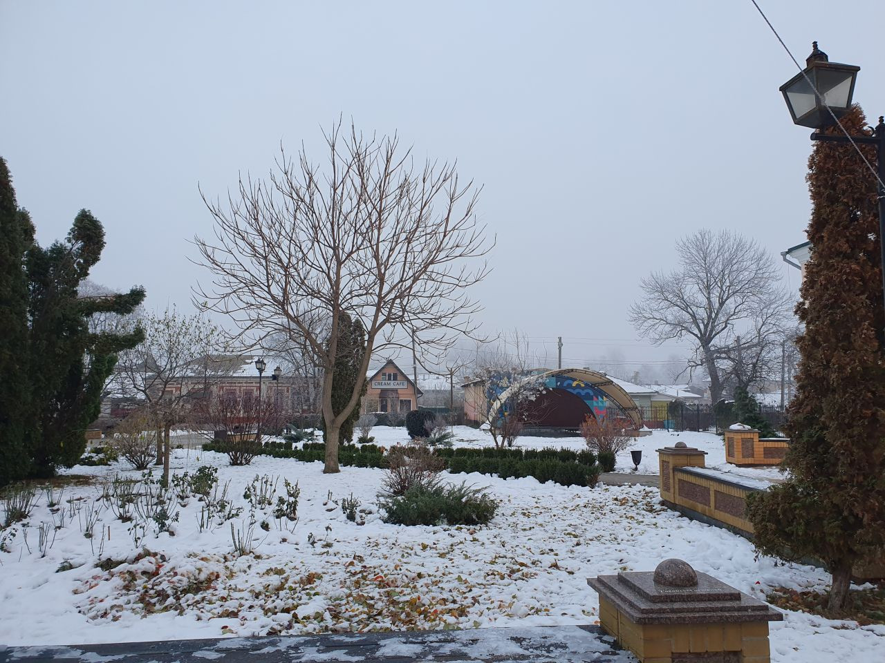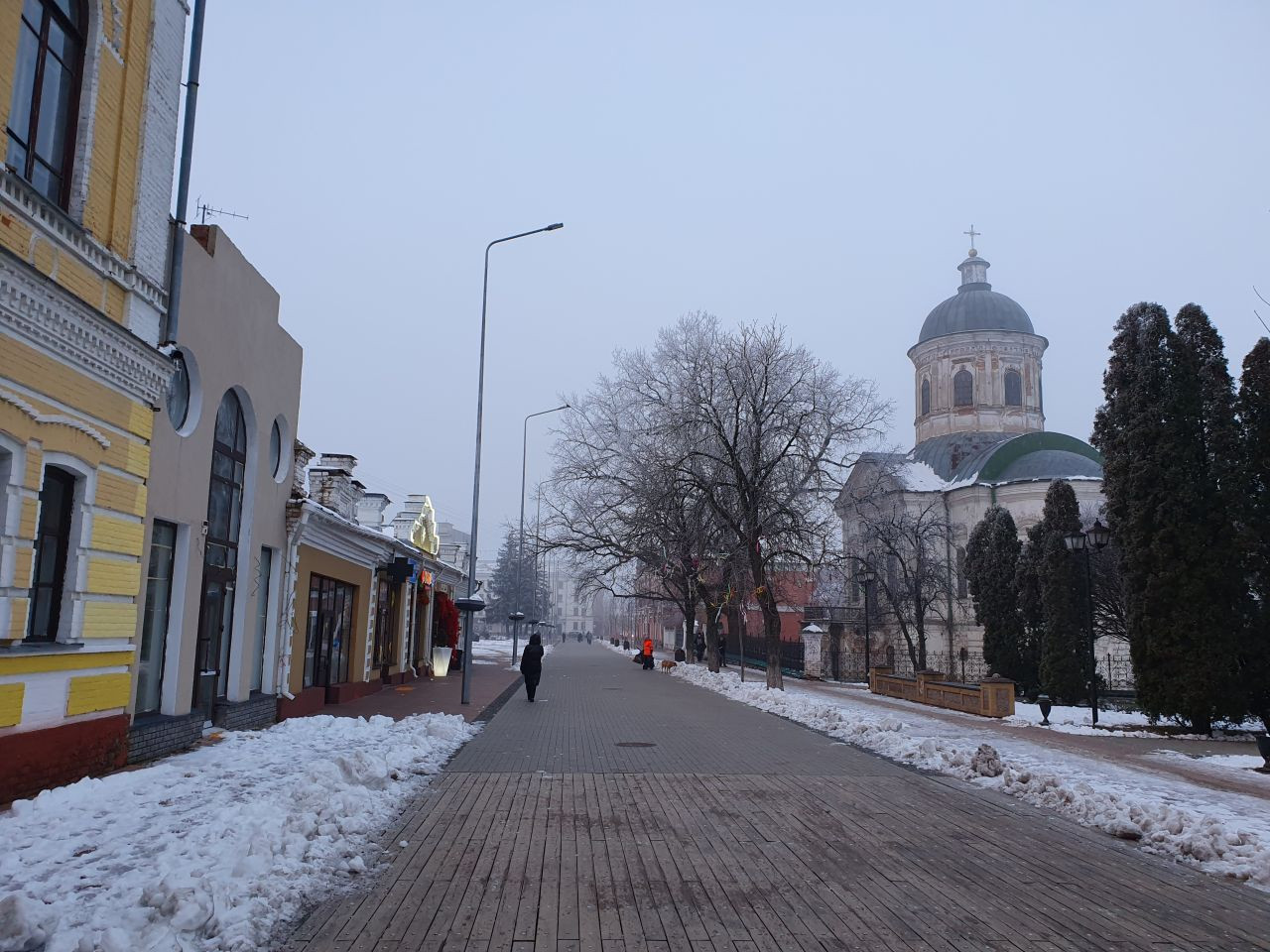 Um 8 Uhr habe ich bereits meinen ersten "Termin" im Rathaus, aber ich bin zeitig auf und mache vorher einen kleinen Spaziergang inn Nizhyns Innenstadt. Es ist nebelig und kalt, wohl um die null Grad und noch relativ ruhig auf den Straßen und auf dem Weg am Rande des Parks.