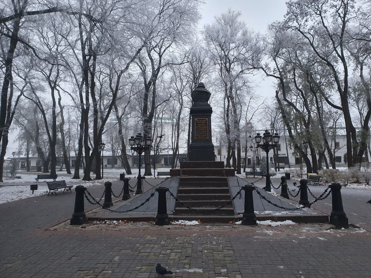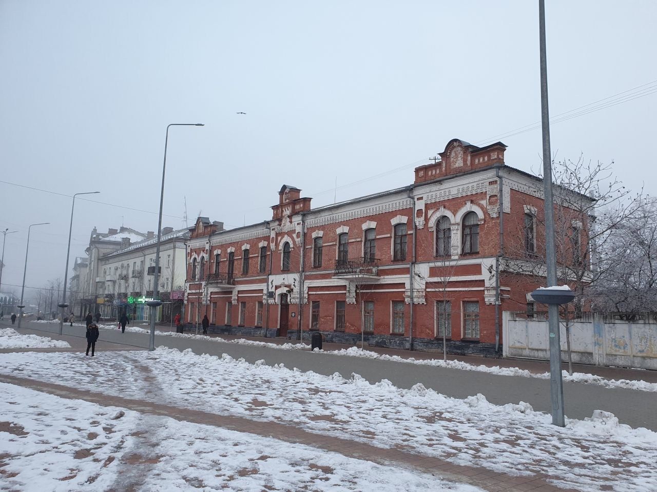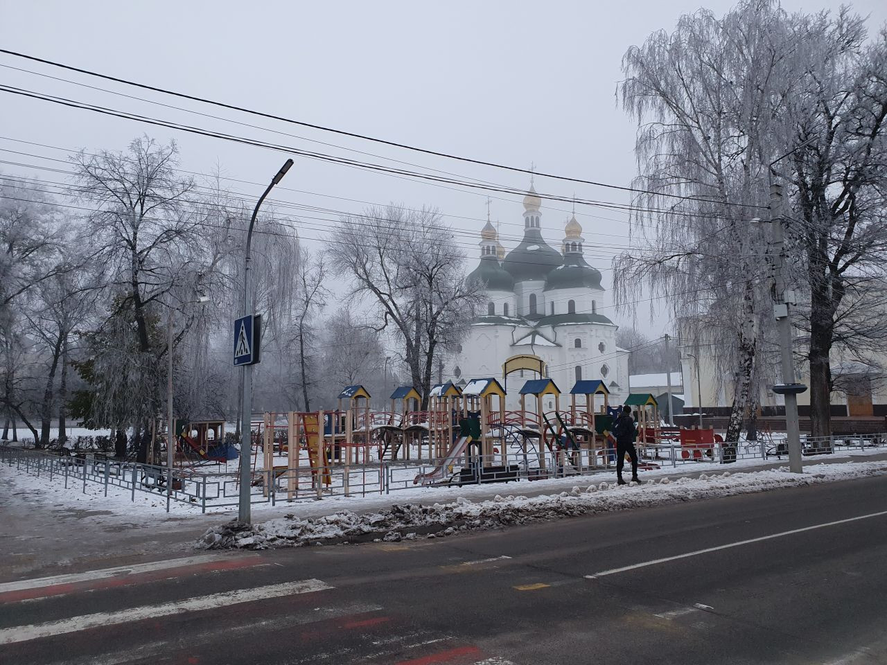 Um 8 Uhr habe ich bereits meinen ersten "Termin" im Rathaus, aber ich bin zeitig auf und mache vorher einen kleinen Spaziergang inn Nizhyns Innenstadt. Es ist nebelig und kalt, wohl um die null Grad und noch relativ ruhig auf den Straßen und auf dem Weg am Rande des Parks.