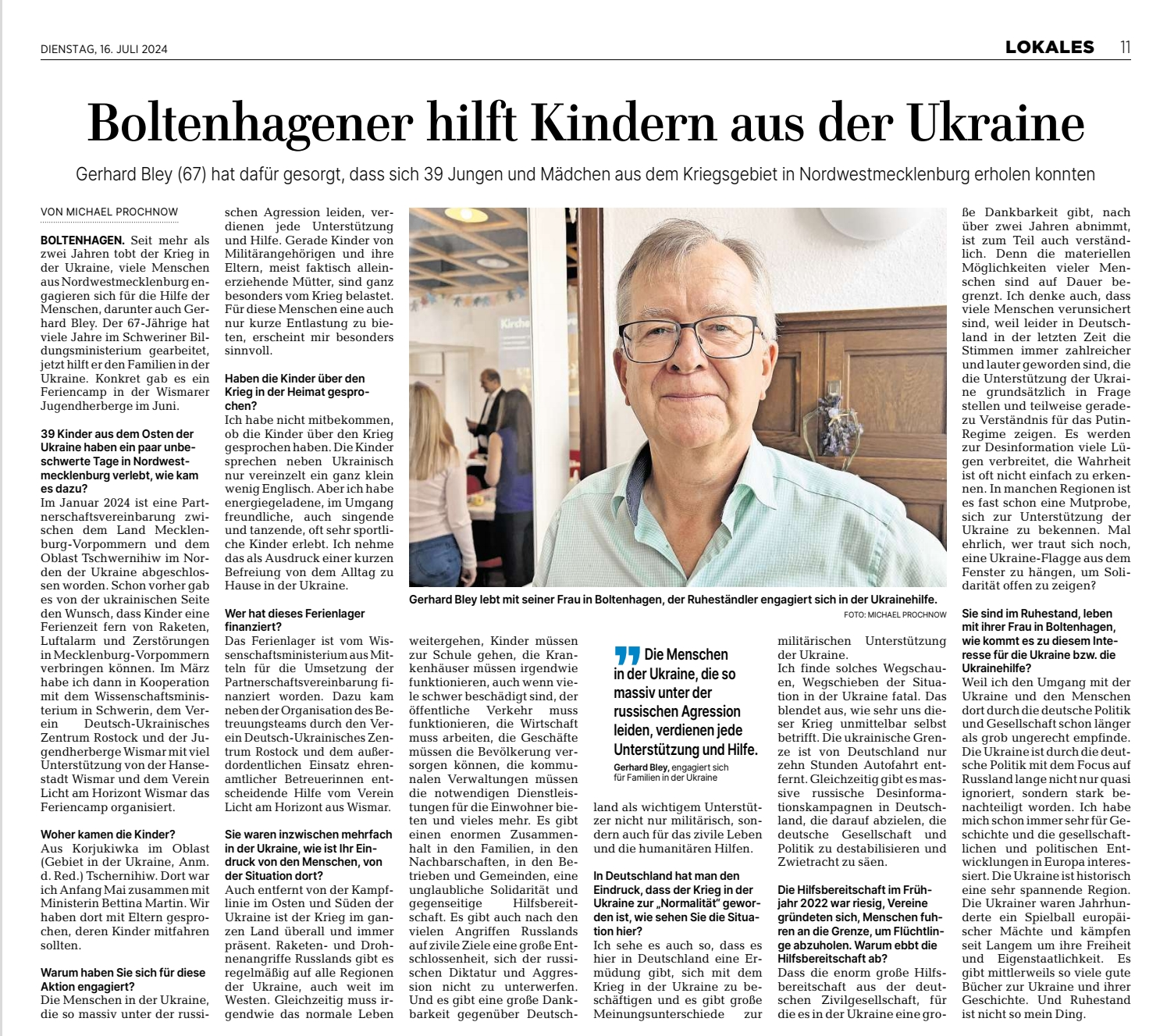 In den letzten zwei Juni-Wochen haben über 40 Kinder und ihre Begleiterinnen aus der Stadt Korjukiwka in Wismar einen erlebnisreichen Ferienaufenthalt verbracht.